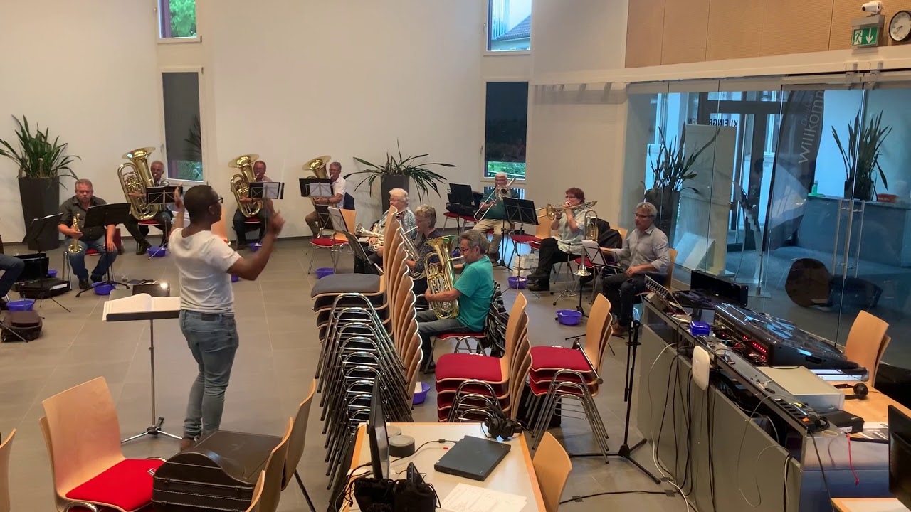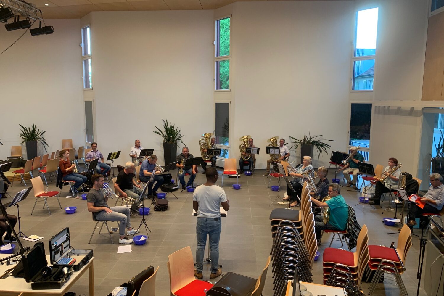 Nach einer drei-monatigen Probepause konnten wir am 16. Juni wieder das Erste Mal gemeinsam Proben. Dies alles aber nicht unter bestimmten Auflagen. So mussten wir unsere Sitzordnung doch ein wenig umstellen. Aber  sehen Sie selbst.